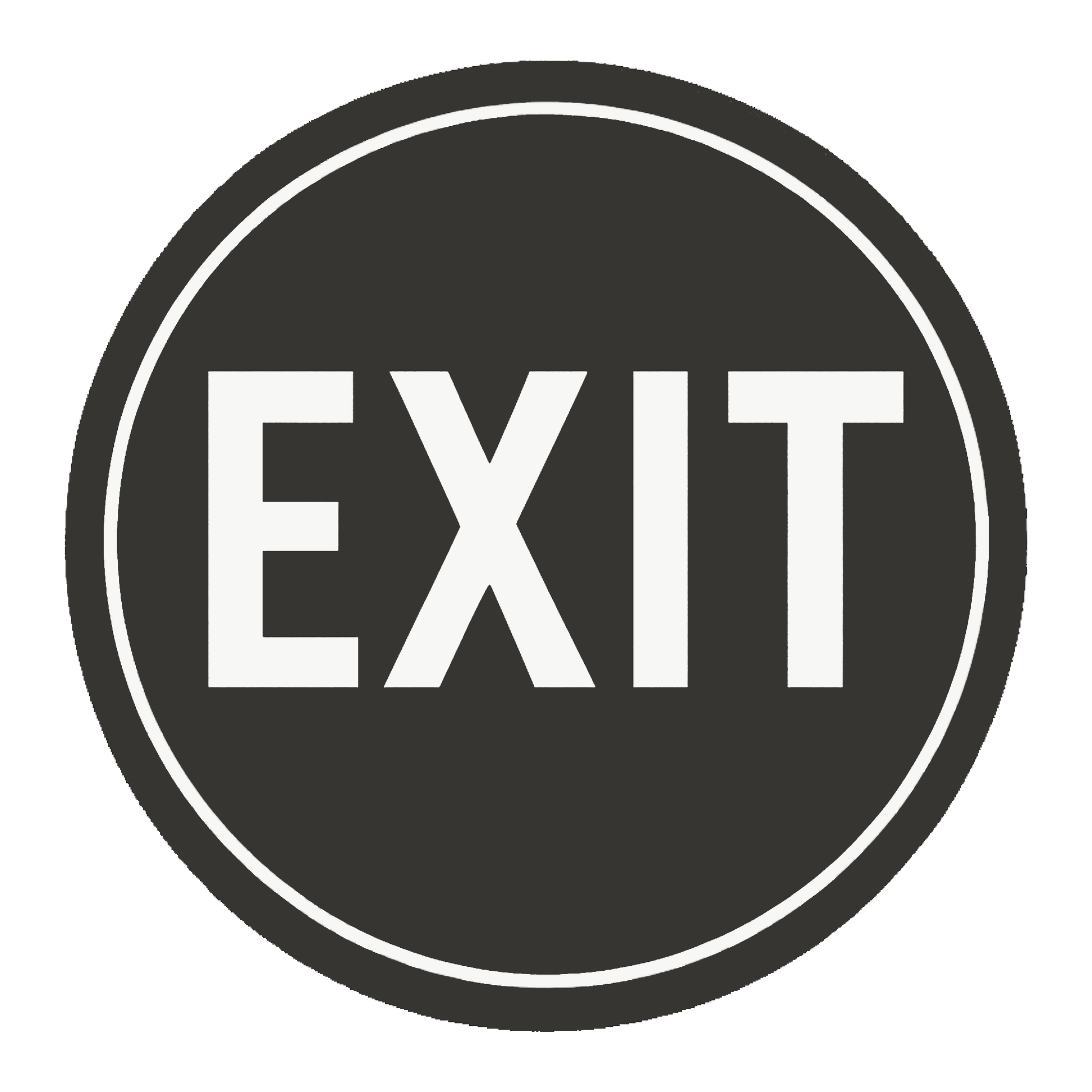 BOLD & STRAIGHTFORWARD: Clearly communicates exit points with strong, white uppercase lettering on a dark background