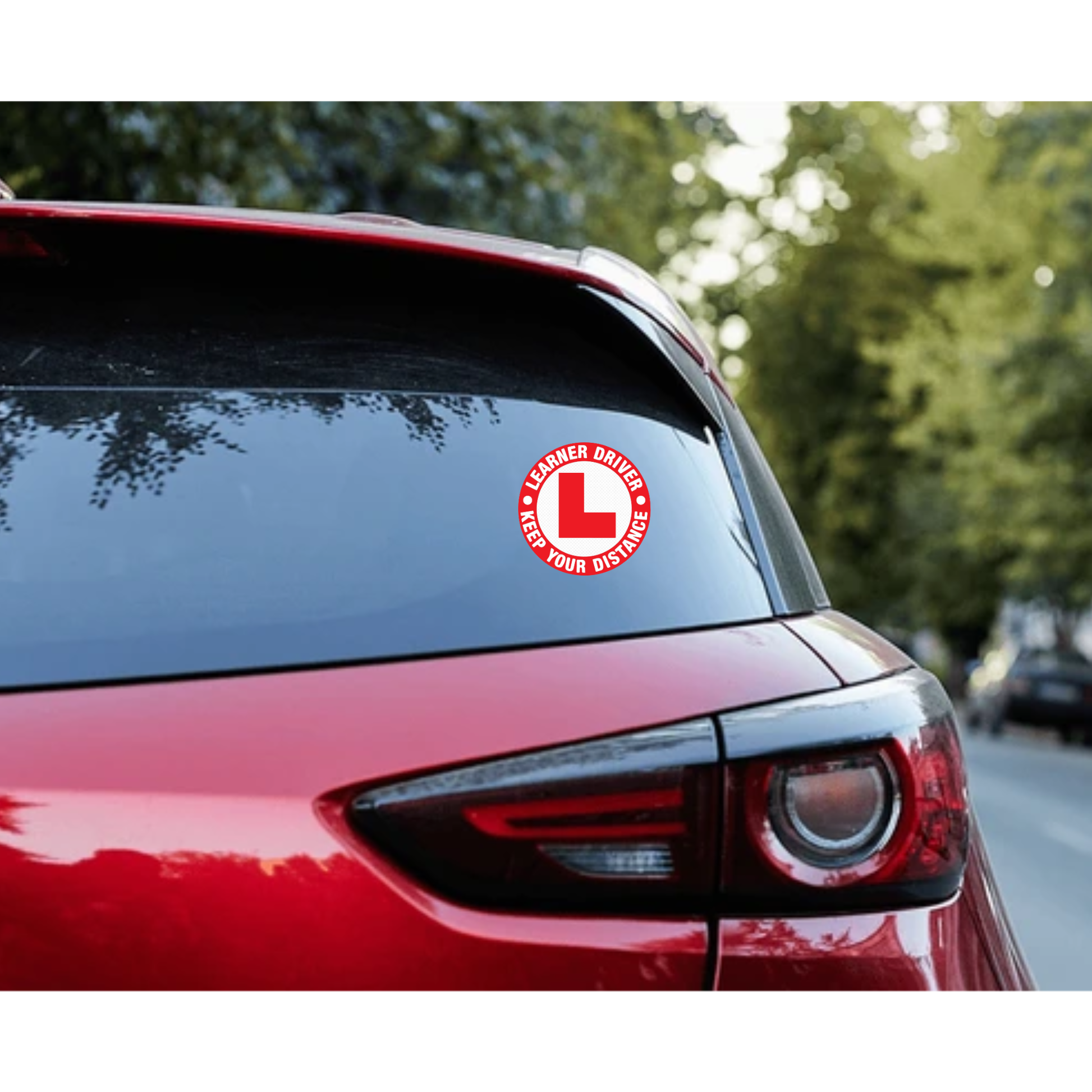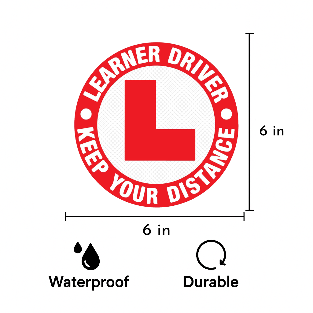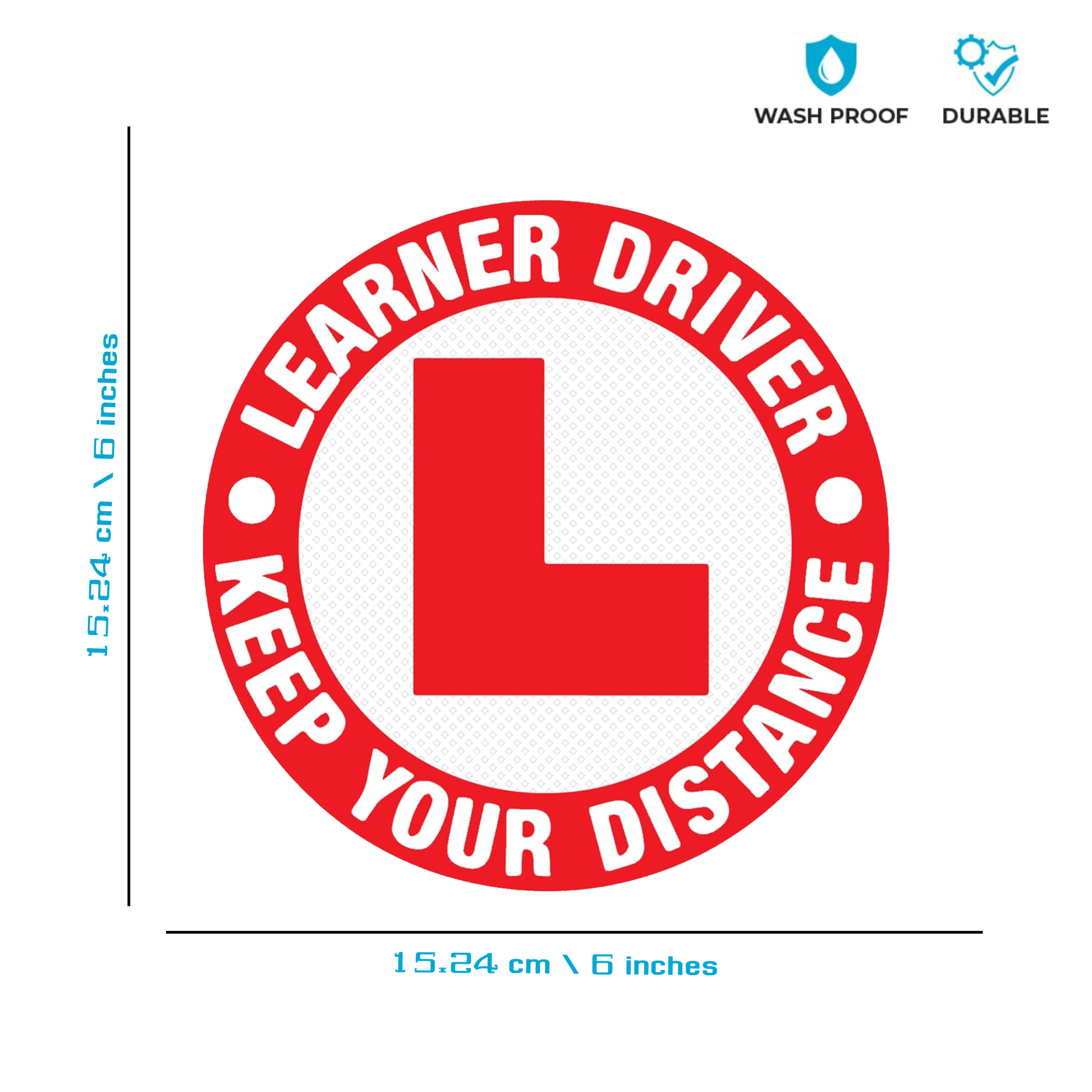 SAFETY FIRST: Features large red “L” with “LEARNER DRIVER” and “KEEP YOUR DISTANCE” warnings for enhanced driver awareness
