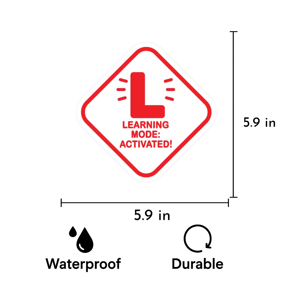 FUN & FUNCTIONAL DESIGN: Eye-catching “Learning Mode: Activated!” message with alert lines around the L – perfect for new drivers