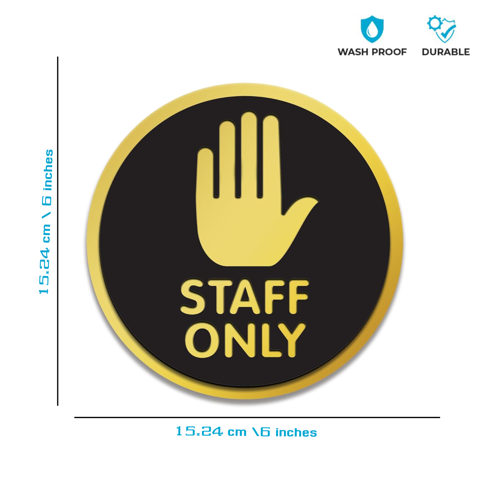 Pack of 2 | Smeeps Round “STAFF ONLY” Sticker Sign – 15.24 cm | Bold Hand Symbol in Gold & Black | Premium Vinyl Door Label for Restricted Office & Commercial Areas
