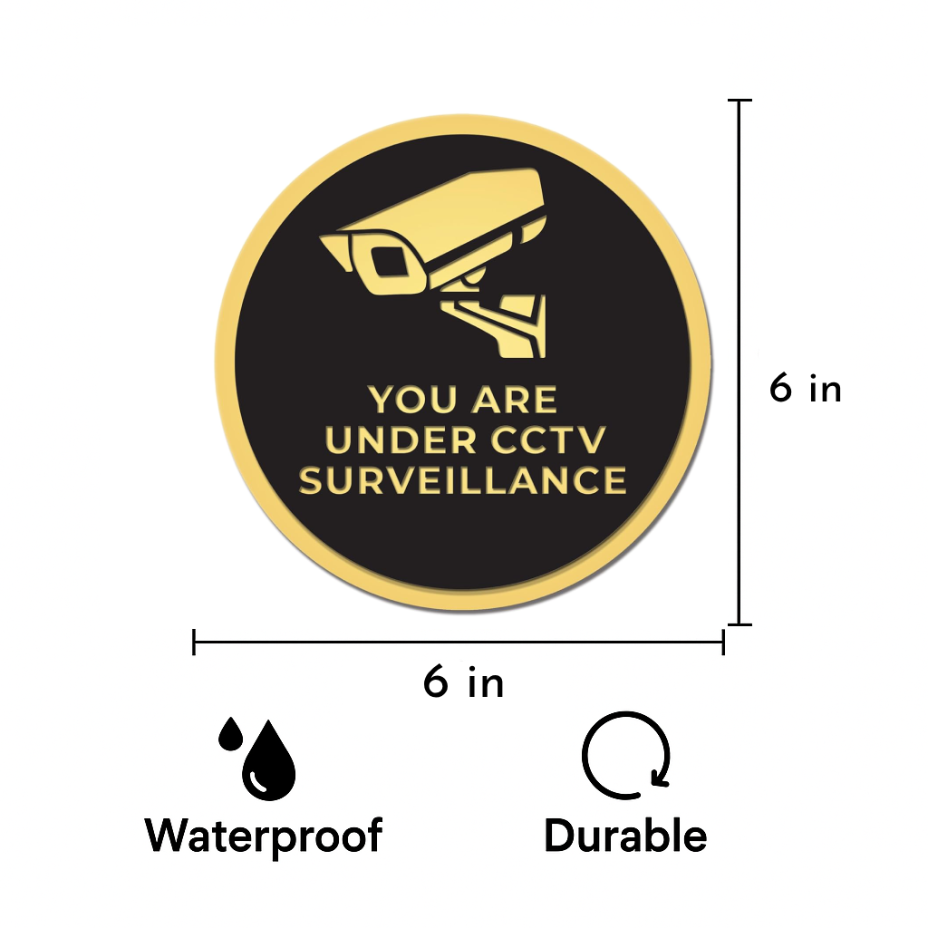 Pack of 2 | Smeeps “You Are Under CCTV Surveillance” Warning Stickers – 15.24 cm Round Gold-on-Black Vinyl Signage | Waterproof, Bold & Professional