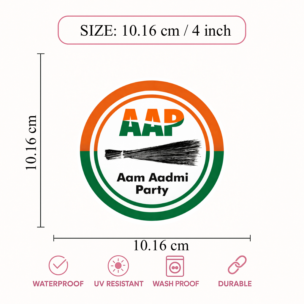 OFFICIAL PARTY SYMBOL DESIGN – Features the iconic AAP (Aam Aadmi Party) logo with the broom symbol, representing honesty, simplicity, and people-centric governance.