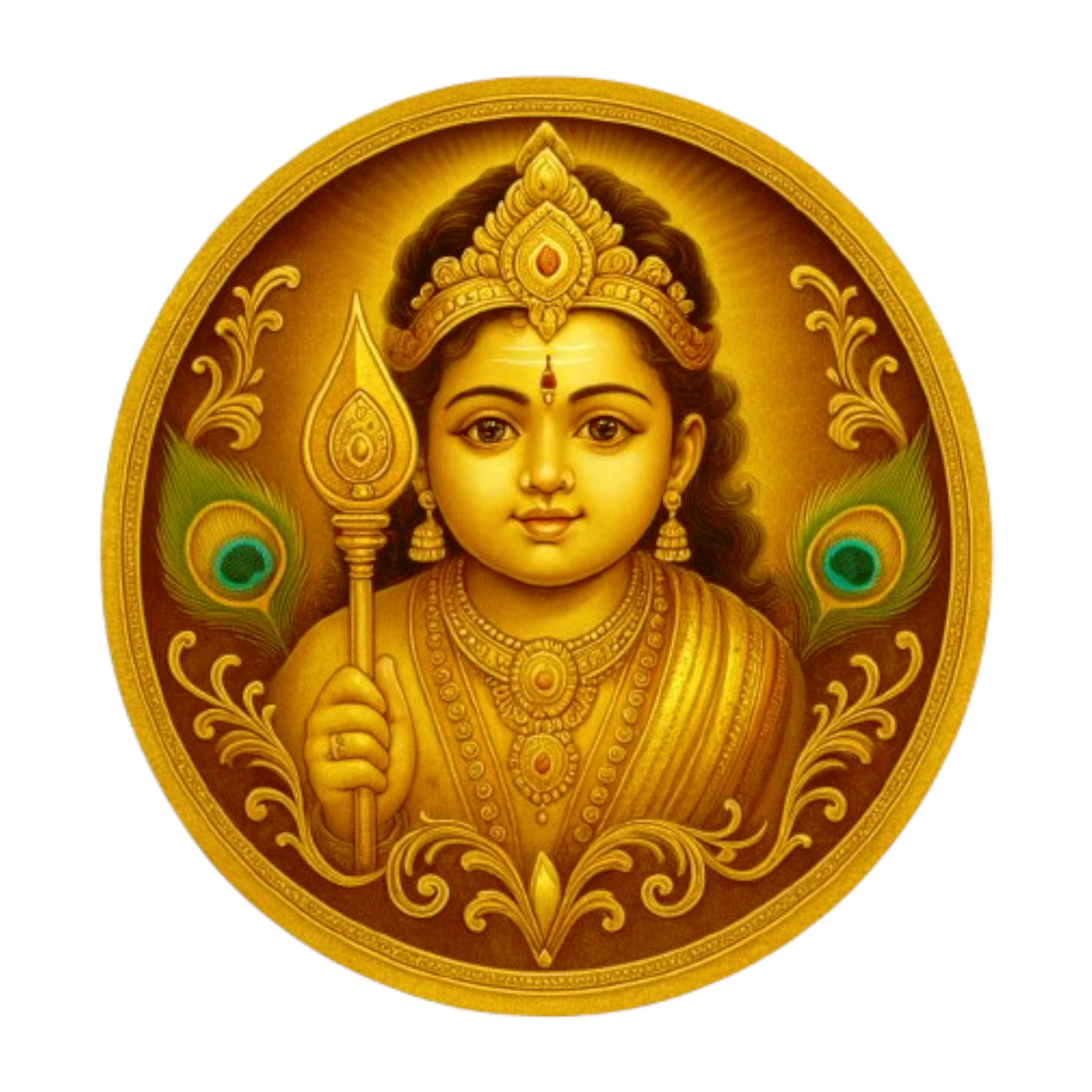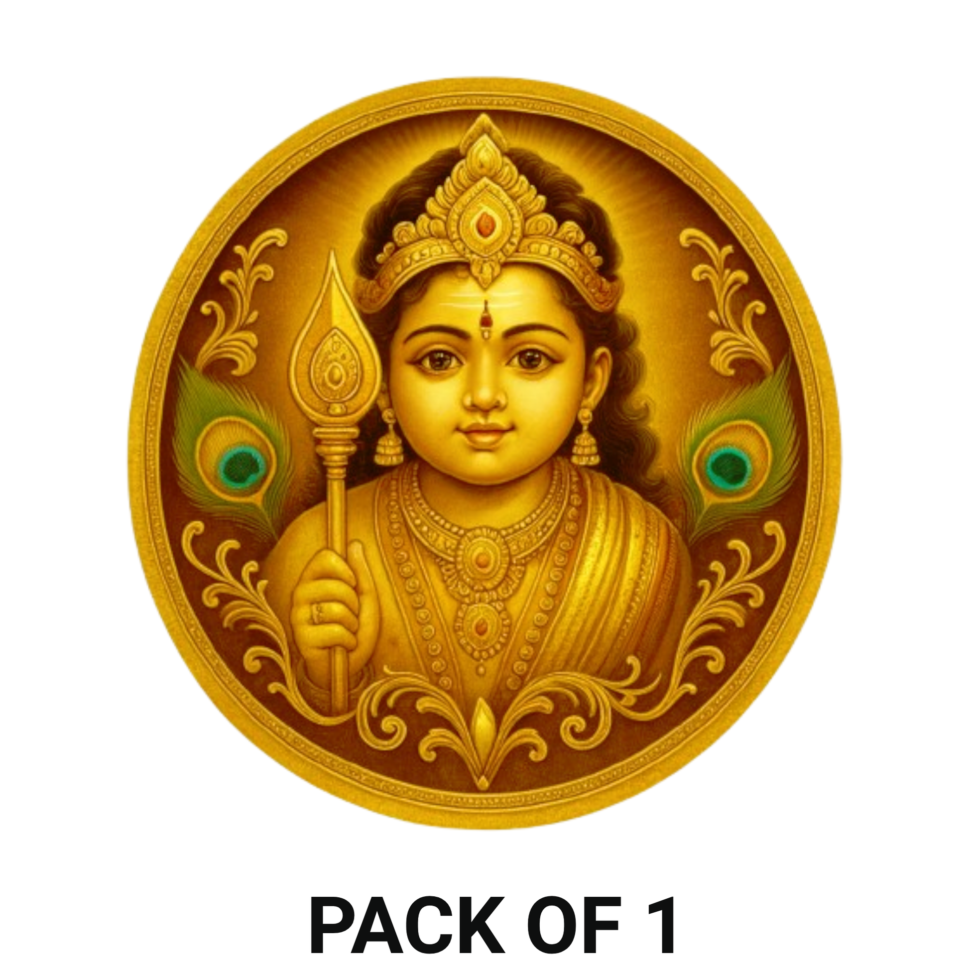 DIVINE GOLDEN ARTWORK – Features a beautifully crafted golden illustration of Bala Murugan holding the Vel, surrounded by elegant ornamental details and peacock feathers for a rich and sacred look.