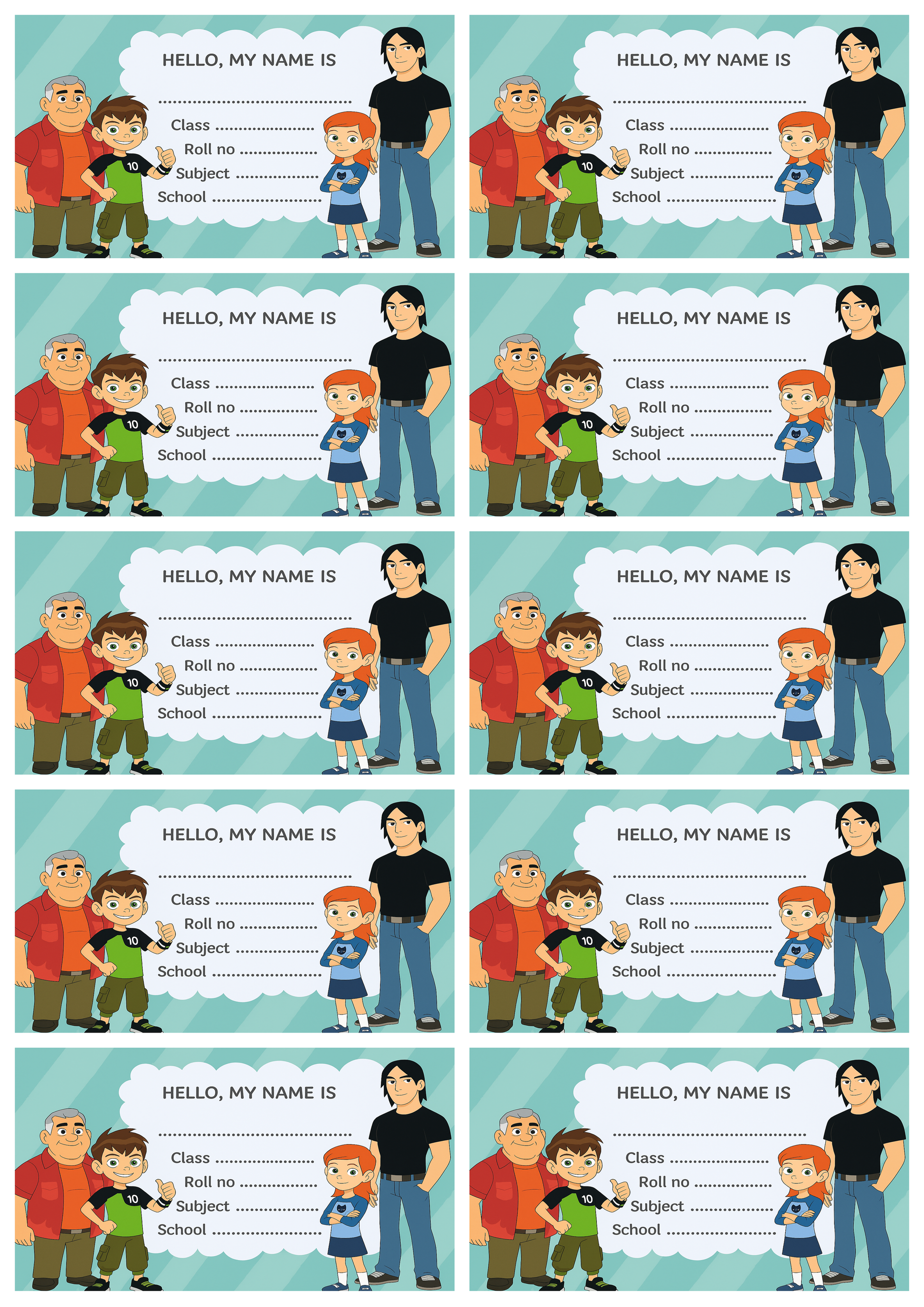 Smeeps Ben 10 Family Notebook Labels – 3.5 x 2 Inches School Name Stickers | Kids Cartoon Theme | Waterproof & Writeable Label Set | Pack of 10