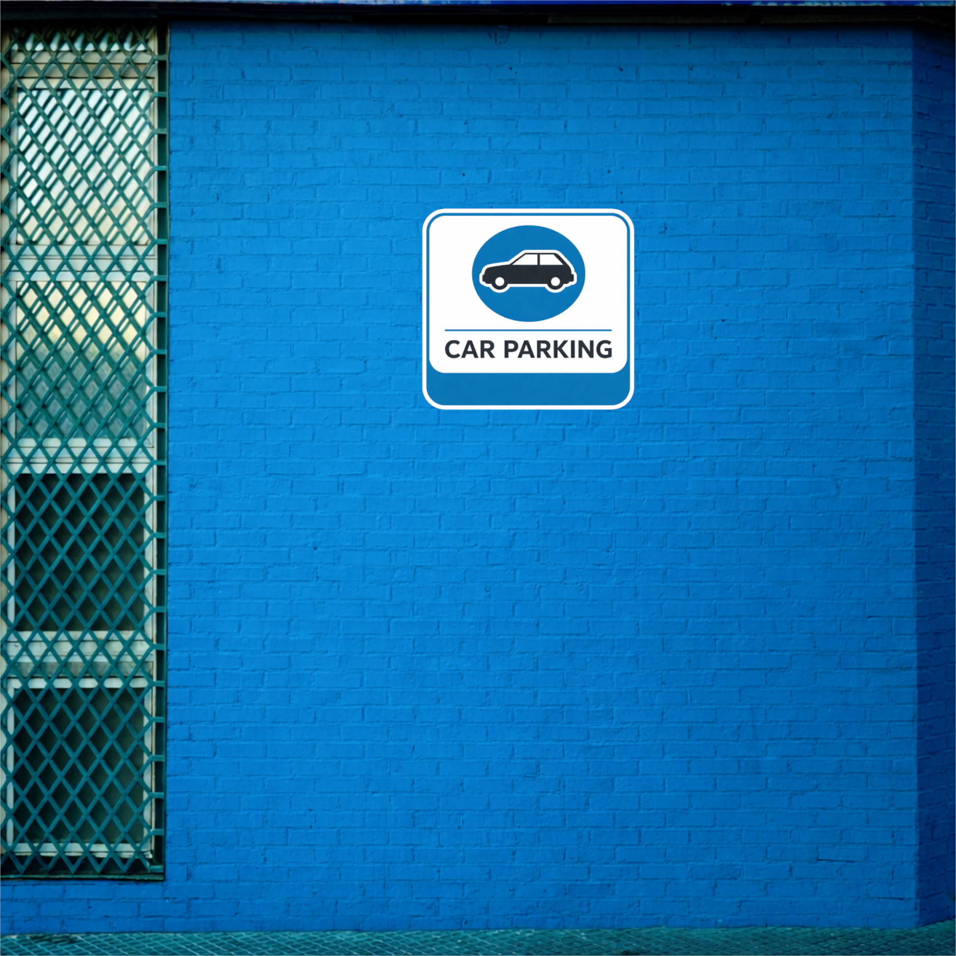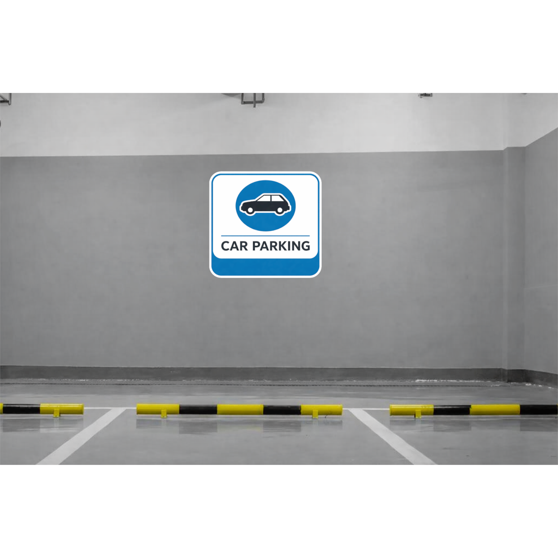 CLEAR CAR PARKING DESIGN – Features a clean blue parking symbol with a car icon and “Car Parking” text for easy identification and proper parking guidance.
