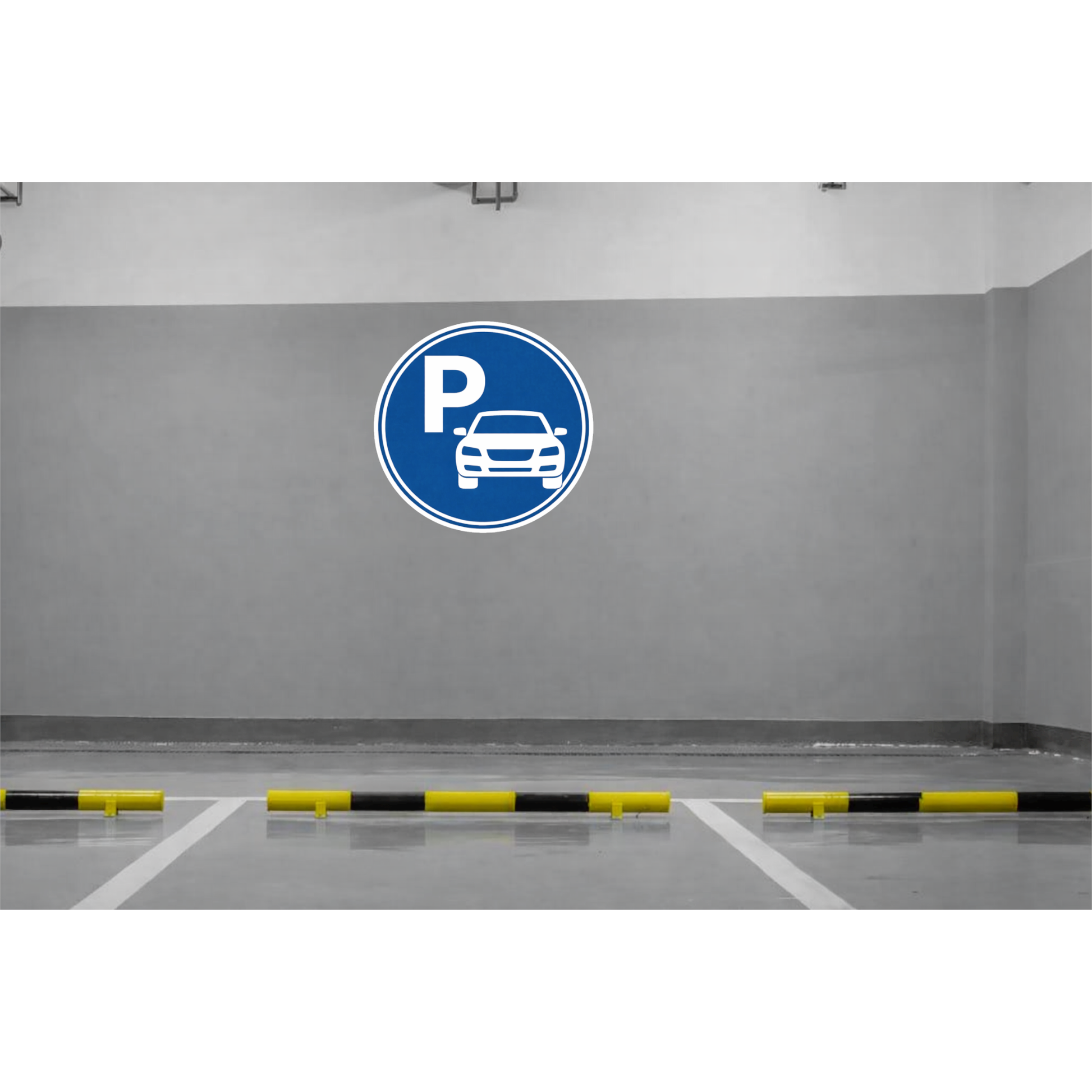 CLEAR CAR PARKING SYMBOL DESIGN – Features a classic blue circular parking sign with a bold “P” symbol and car icon, ensuring instant recognition and clear parking guidance.