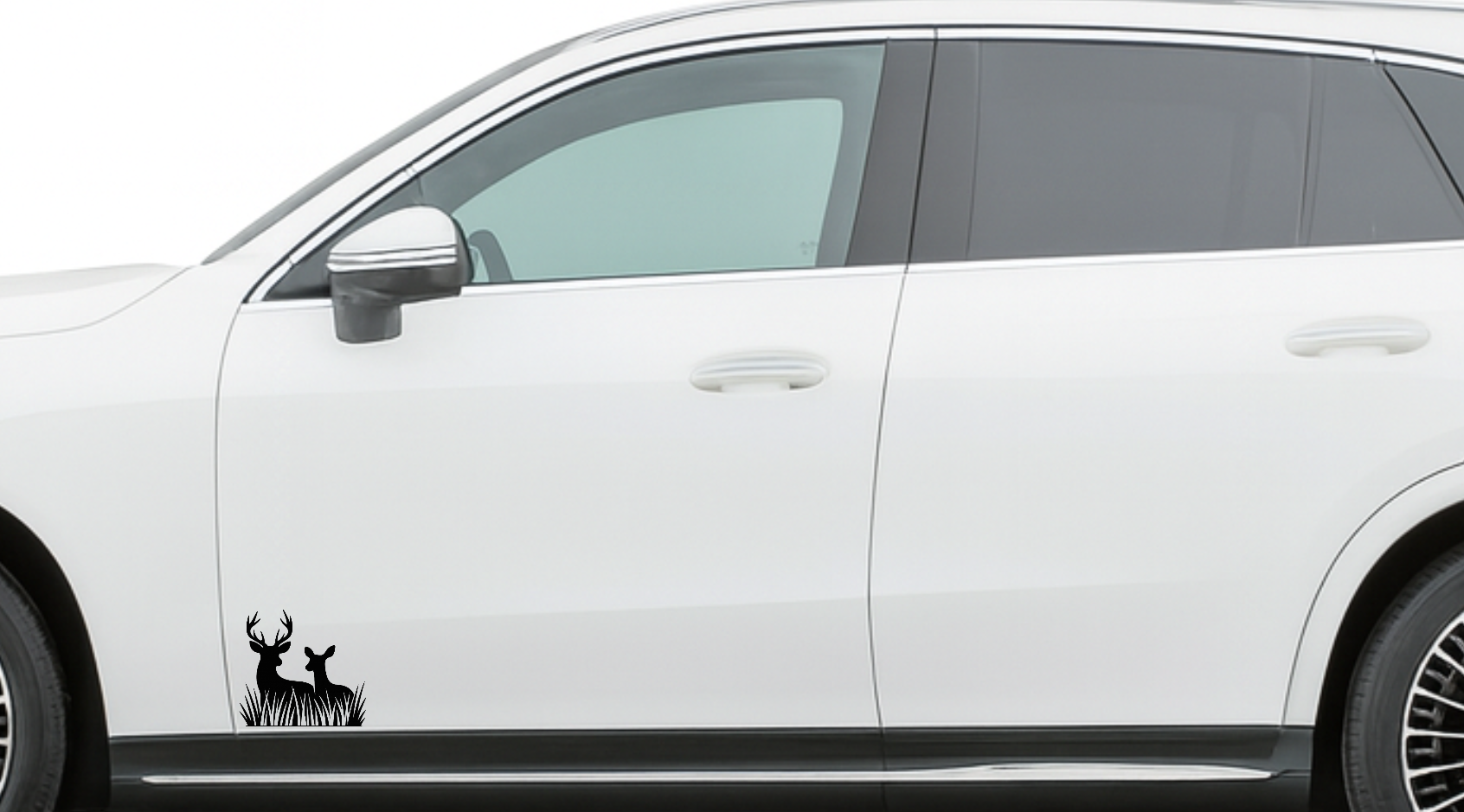 Smeeps Deer Couple in Grass Sticker – 10.16 x 10.93 cm Car & Bike Vinyl Decal | Wildlife Silhouette Design | Waterproof & Durable