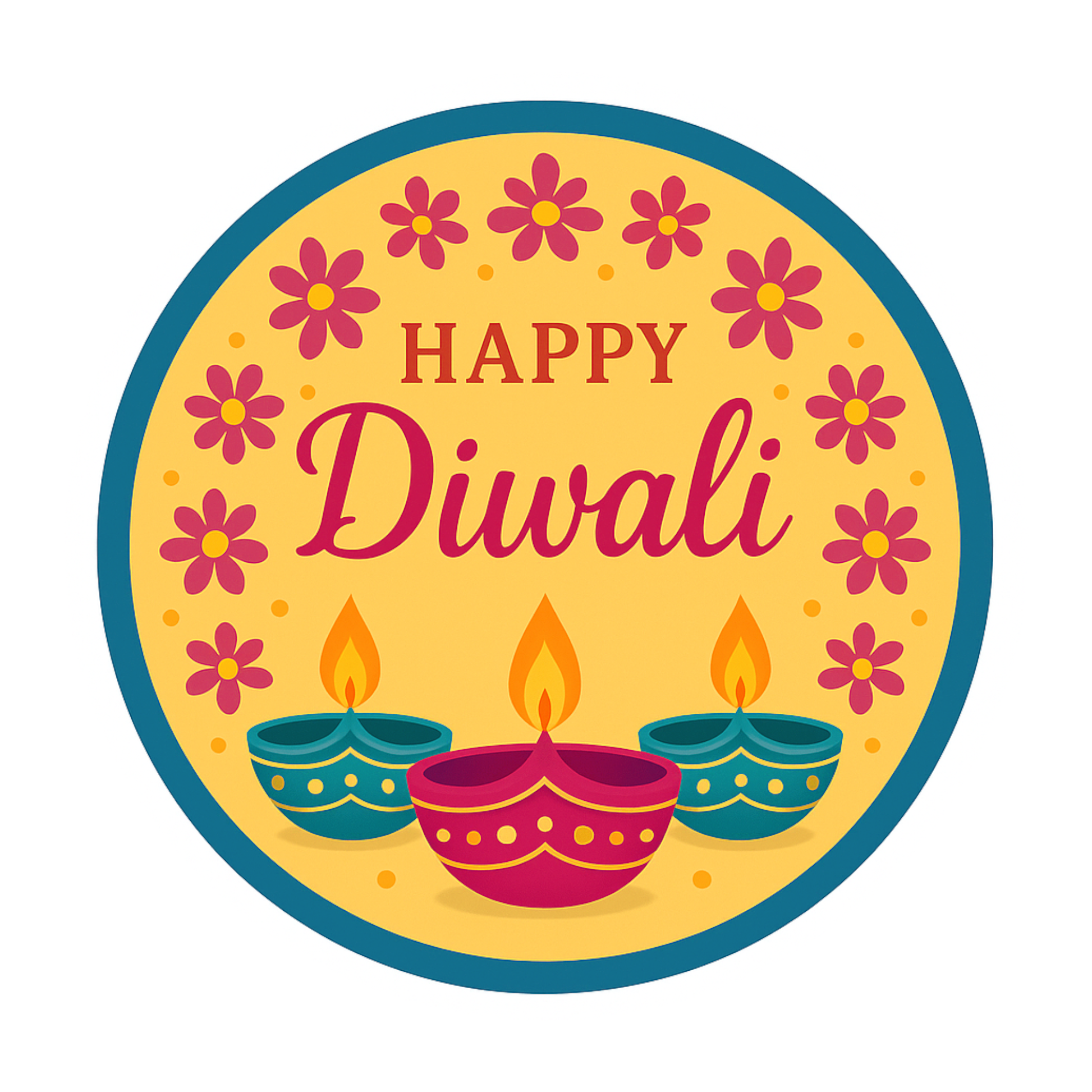 Smeeps Happy Diwali Sticker – 10.16 x 10.16 cm Round Floral & Diya Design | Festive Deepavali Décor Decal | Waterproof & UV-Resistant Vinyl