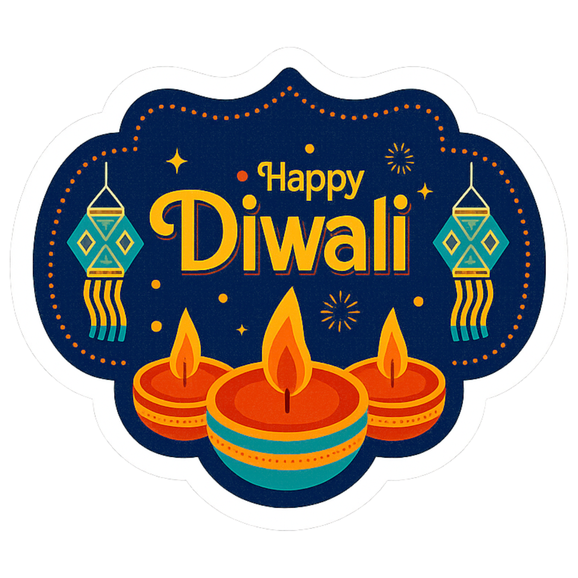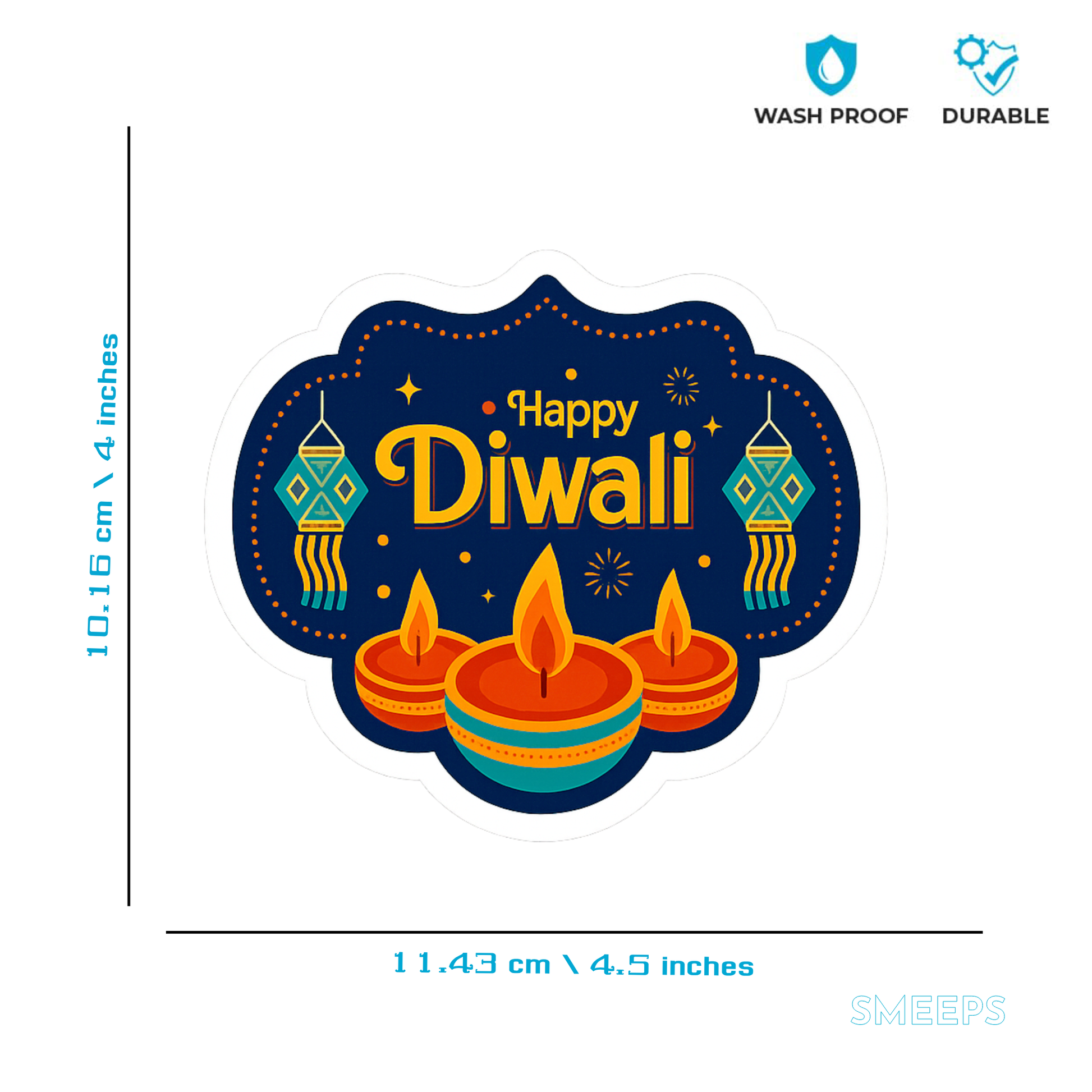 Smeeps Happy Diwali Sticker – 10.16 x 11.43 cm Festive Deepavali Décor Decal | Diya & Lantern Theme Design | Waterproof & UV-Resistant Vinyl