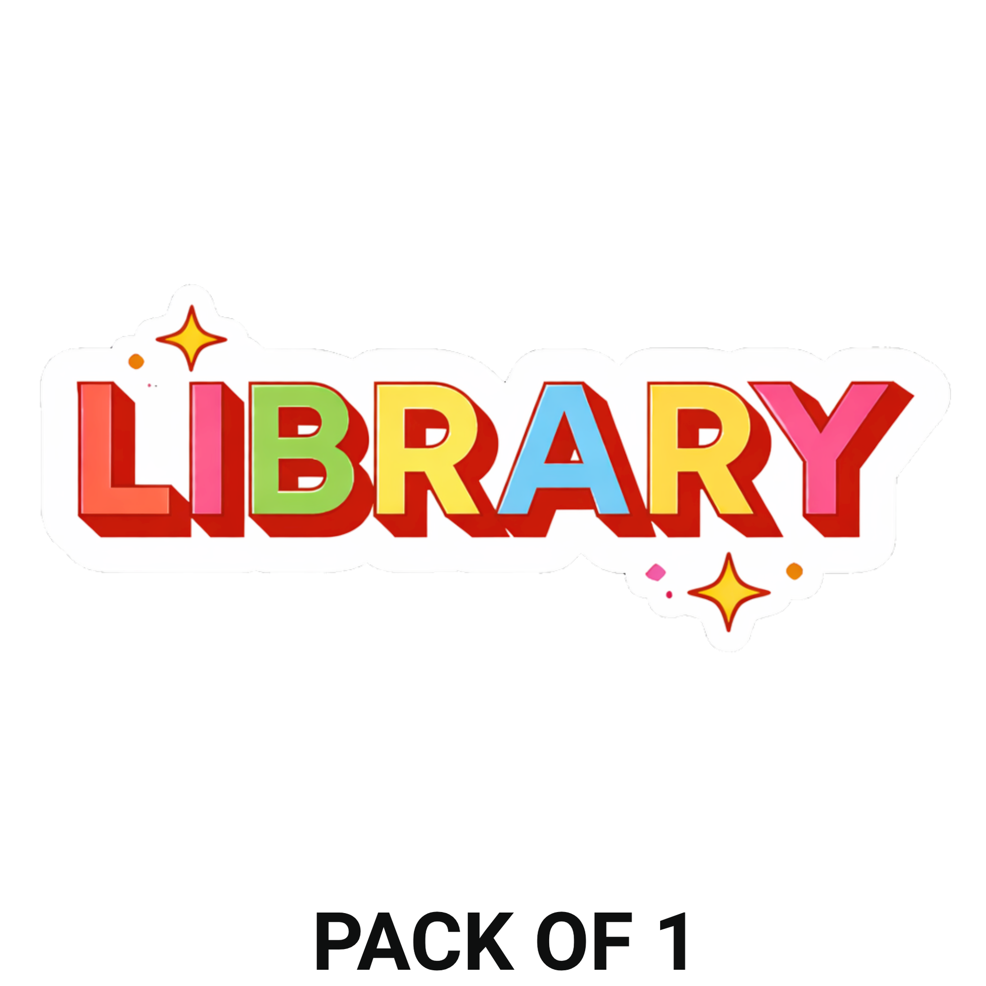 COLORFUL LIBRARY TEXT DESIGN – Features a bold and vibrant “LIBRARY” text design with playful colors and decorative accents, ideal for clearly marking library spaces with a friendly and professional look.
