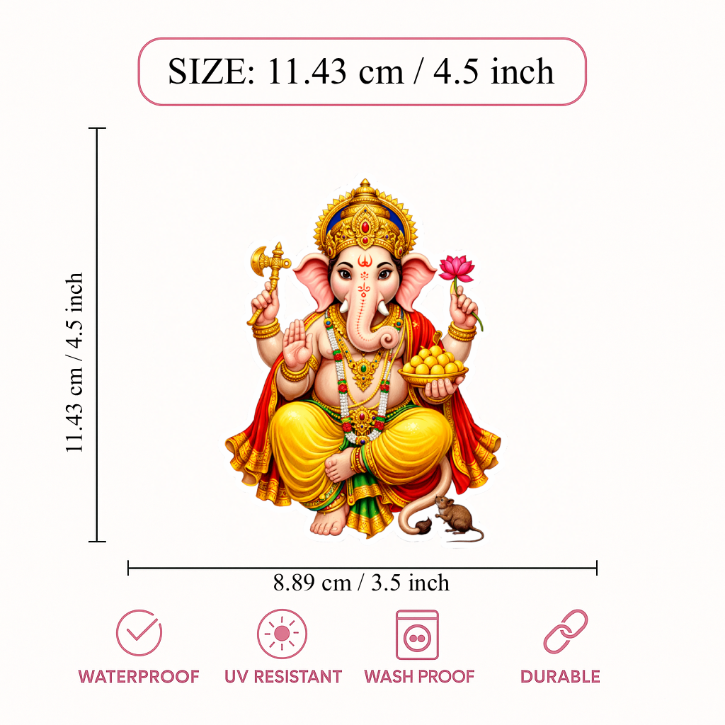 Smeeps Lord Ganesha Sticker – 11.43 × 8.89 cm (4.5 × 3.5 Inch) Hindu Religious Vinyl Decal for Car & Bike | Waterproof UV Resistant Ganpati Bappa Sticker