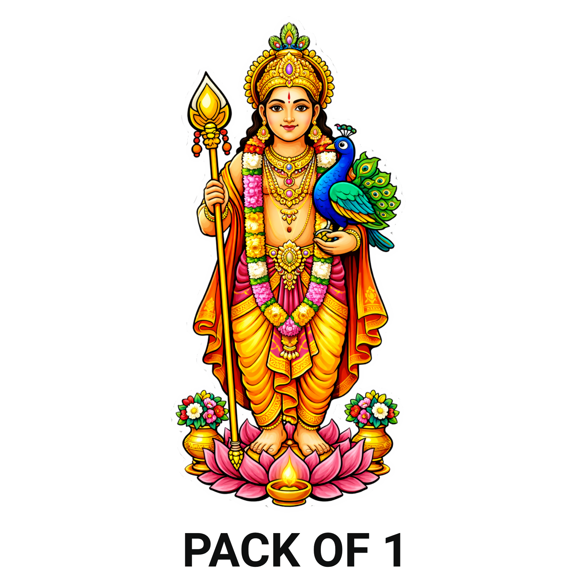 DIVINE LORD MURUGAN DESIGN – Features a finely detailed illustration of Lord Murugan (Subramanya Swamy) holding the Vel (spear) with peacock, symbolizing courage, wisdom, protection, victory, and divine power.