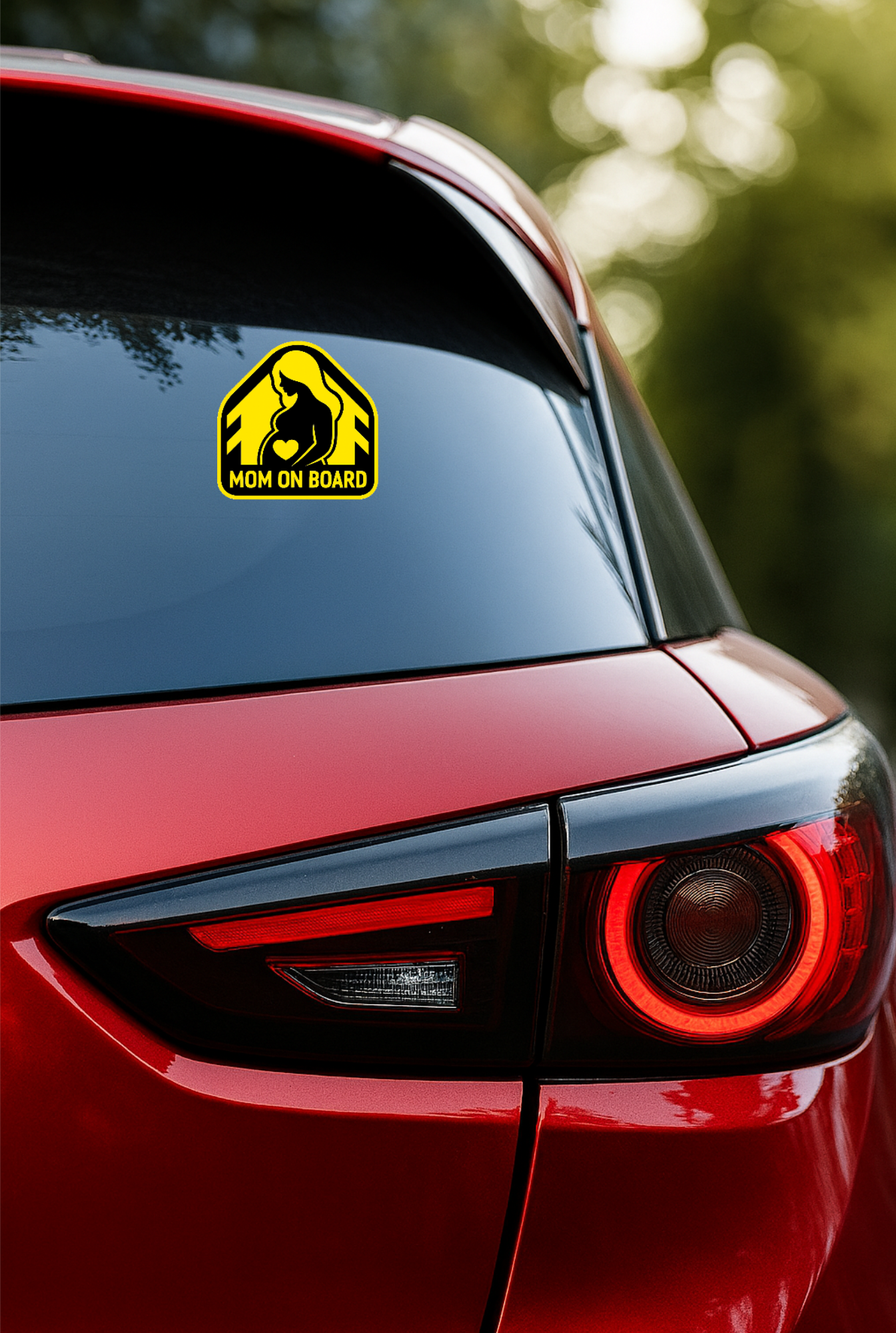 CLEAR SAFETY MESSAGE – Features a bold silhouette of a pregnant mom with a heart symbol, designed to alert nearby drivers and promote safer distance on the road.