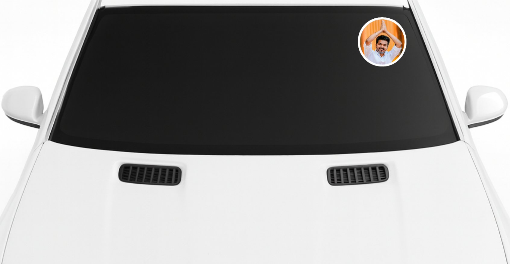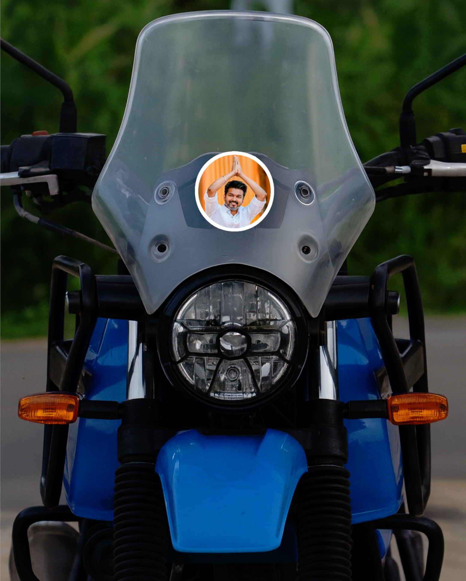 Smeeps Vijay Greeting Pose Sticker – 11.43 x 11.43 cm Round Vinyl Decal | Greeting Pose Design | Waterproof & Durable