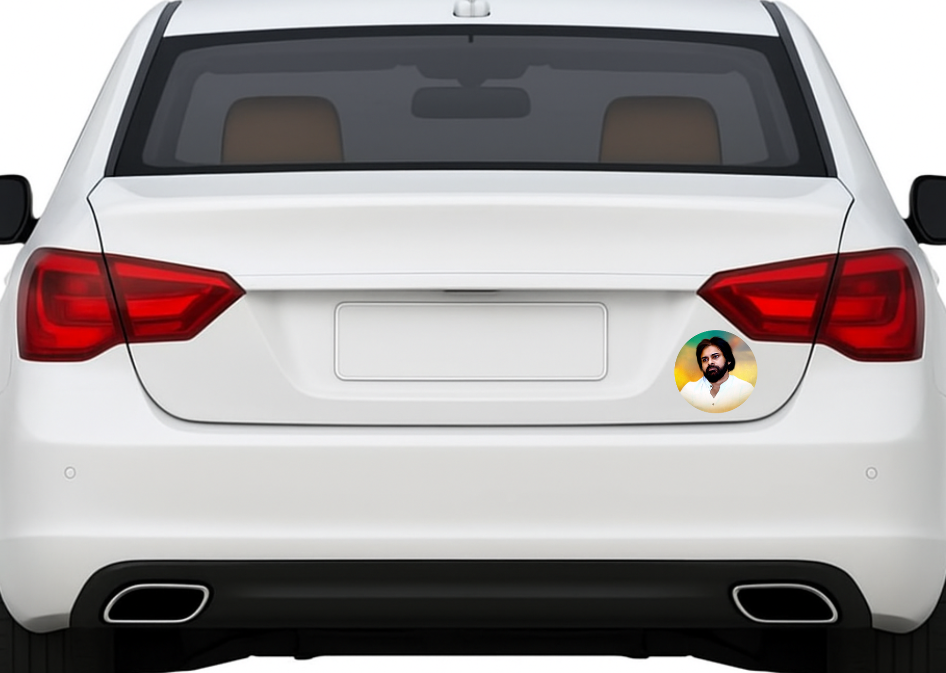 Smeeps Pawan Kalyan Calm Portrait Sticker – 10.16 cm (4 Inch) Round Political Vinyl Decal | Waterproof UV Resistant Car & Bike Sticker