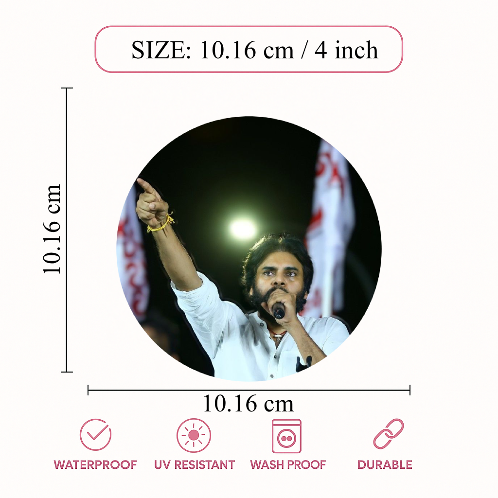 Smeeps Pawan Kalyan Rally Pointing Pose Sticker – 10.16 cm (4 Inch) Round Political Vinyl Decal | Waterproof UV Resistant Car & Bike Sticker
