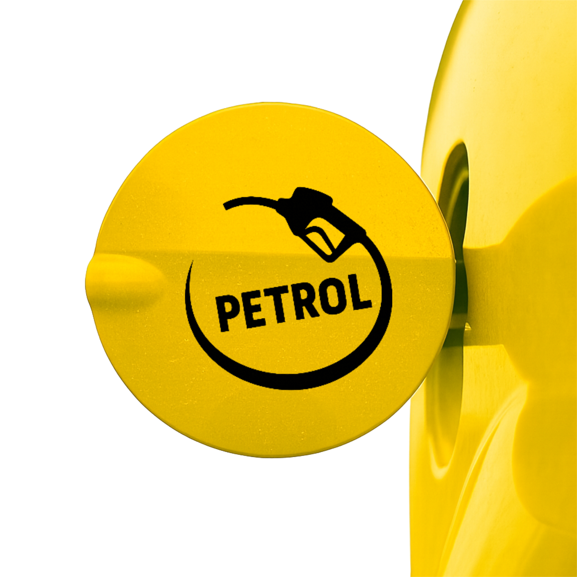 MINIMAL PETROL INDICATOR DESIGN – Features a clean circular outline with a fuel nozzle and bold “PETROL” text for a simple yet stylish fuel-type marking.