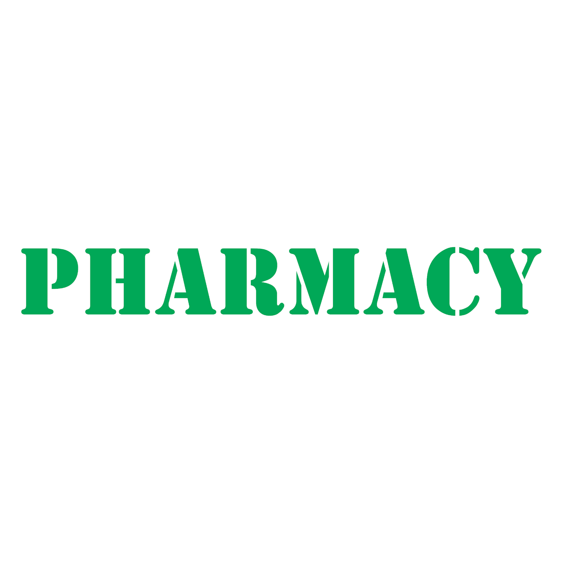 CLEAR & BOLD DESIGN – Features a bright green “PHARMACY” text in a clean stencil style, ensuring high visibility for medical shops, clinics, and chemist stores.