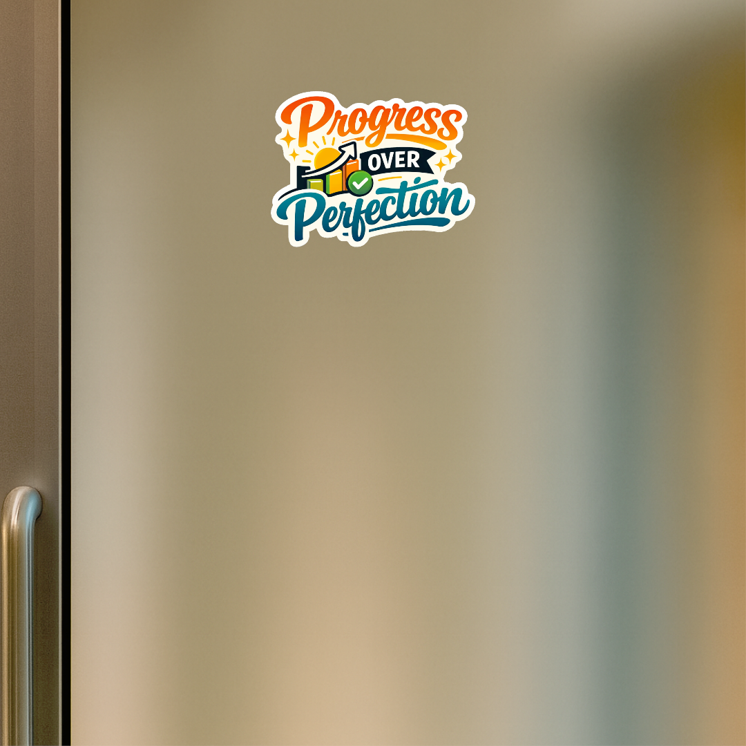 Smeeps Progress Over Perfection Sticker – 10.16 × 7.62 cm (4 × 3 Inch) Motivational Quote Vinyl Sticker | Waterproof UV Resistant Wash Proof Durable