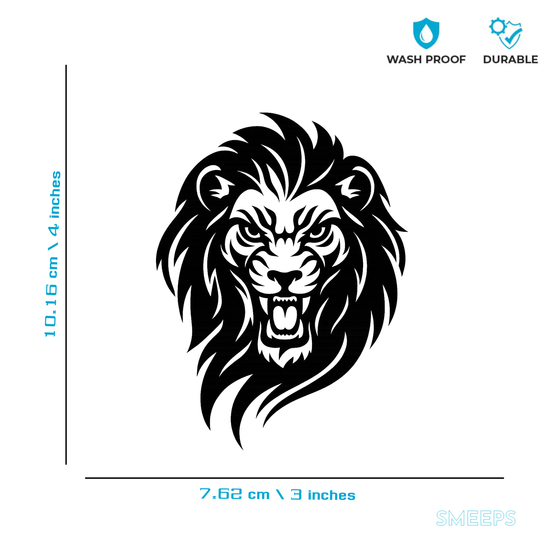 Smeeps Roaring Lion Face Sticker – 10.16 x 7.62 cm Car & Bike Vinyl Decal | Fierce Lion Head Design | Waterproof & Durable