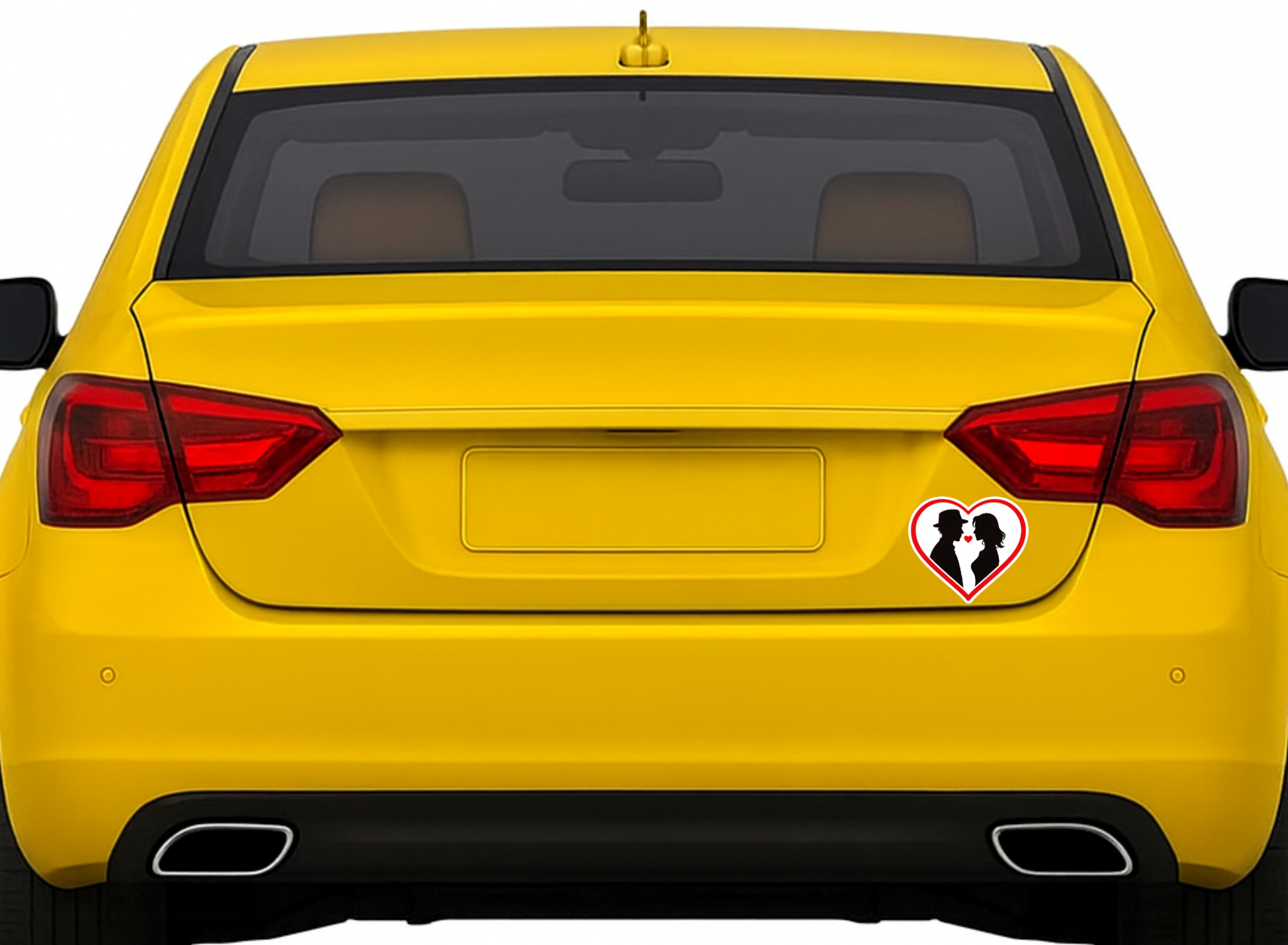 ROMANTIC COUPLE HEART DESIGN – Features a beautiful heart-shaped sticker with a red outline, romantic couple silhouette facing each other, and a small love heart at the center, symbolizing love, bonding, and togetherness.