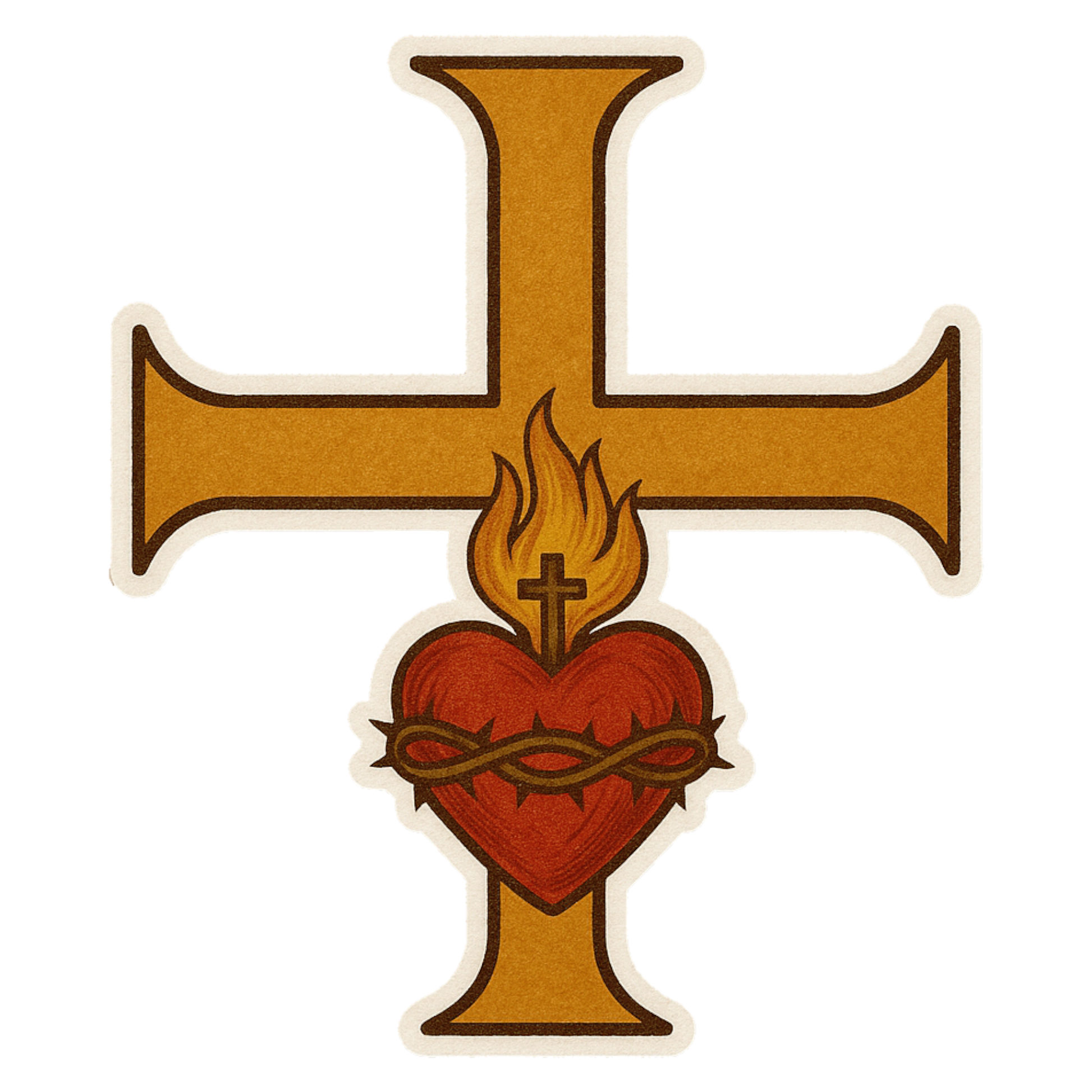 HOLY CHRISTIAN SYMBOL – Features the Sacred Heart of Jesus with a glowing flame, crown of thorns, and traditional cross design, representing faith, love, and devotion.