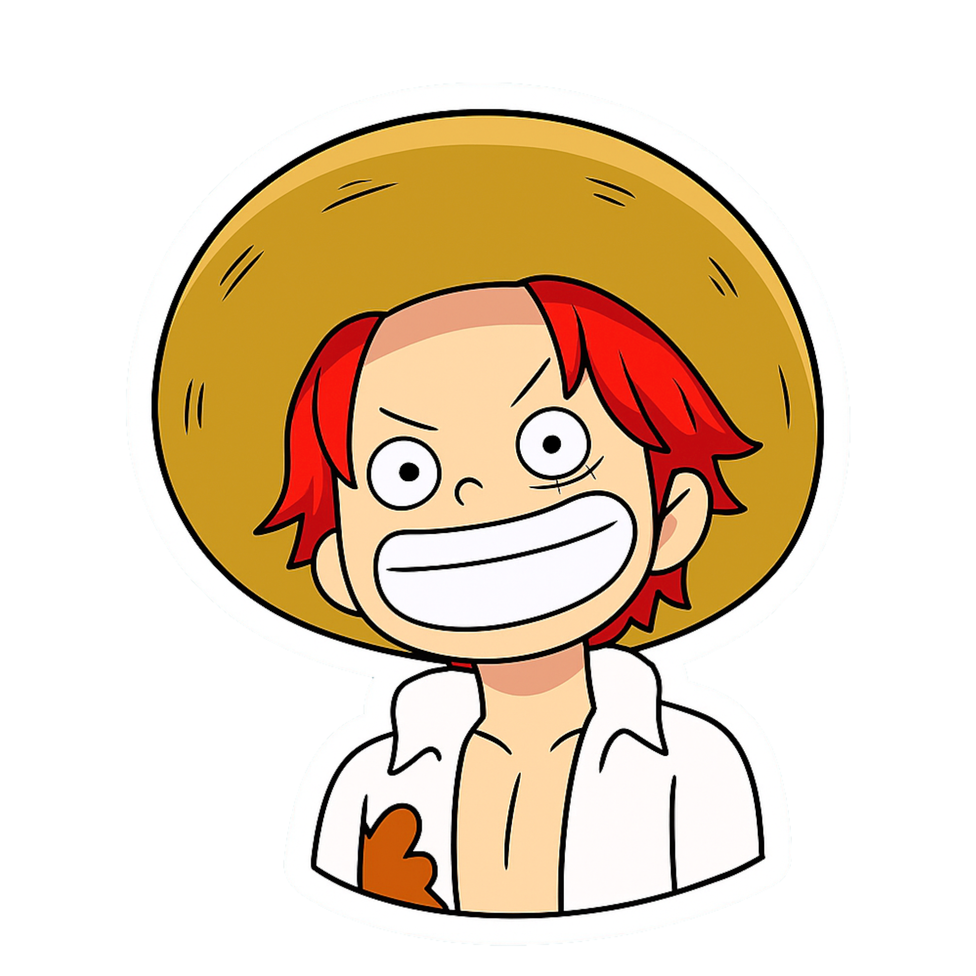 CUTE PIRATE FACE DESIGN – Features an adorable mini version of the iconic red-haired pirate character with a wide grin and signature straw-like hat style for a fun, expressive look.