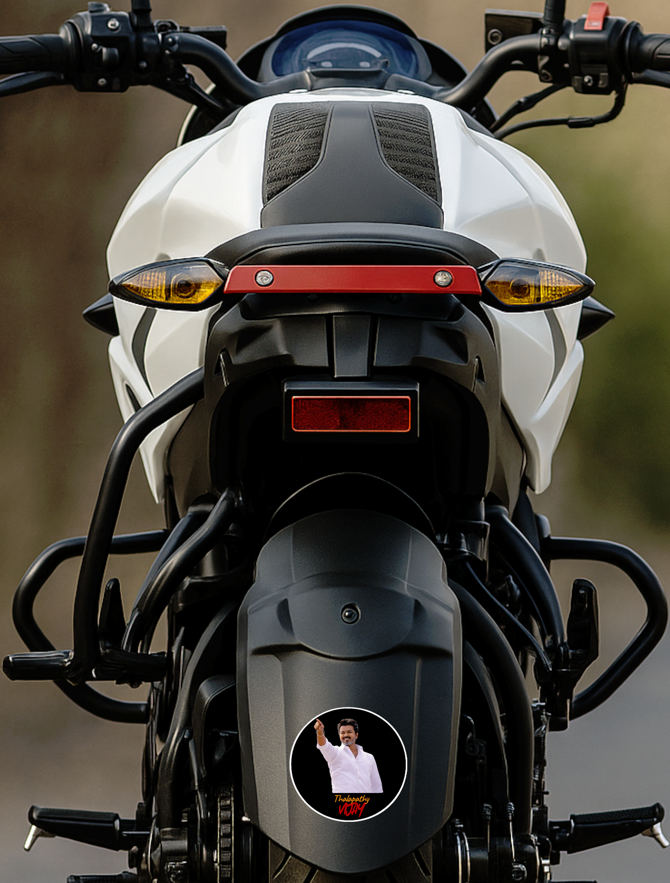 ICONIC THALAPATHY VIJAY DESIGN – Features a bold circular sticker with a deep black background, Vijay’s confident pointing pose, and stylish “Thalapathy Vijay” text, delivering a powerful fan-favorite look.