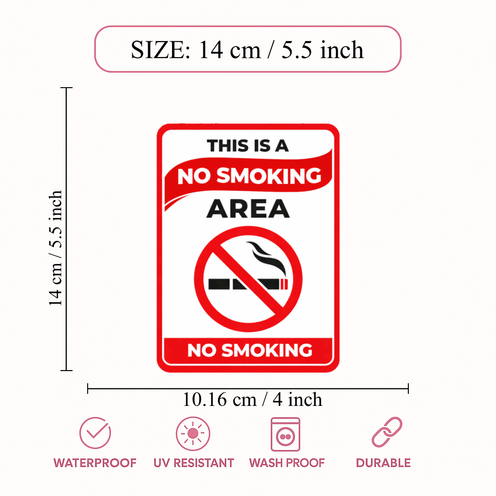 CLEAR NO SMOKING AREA MESSAGE – Displays “THIS IS A NO SMOKING AREA” text with universal no-smoking symbol for instant understanding and compliance.