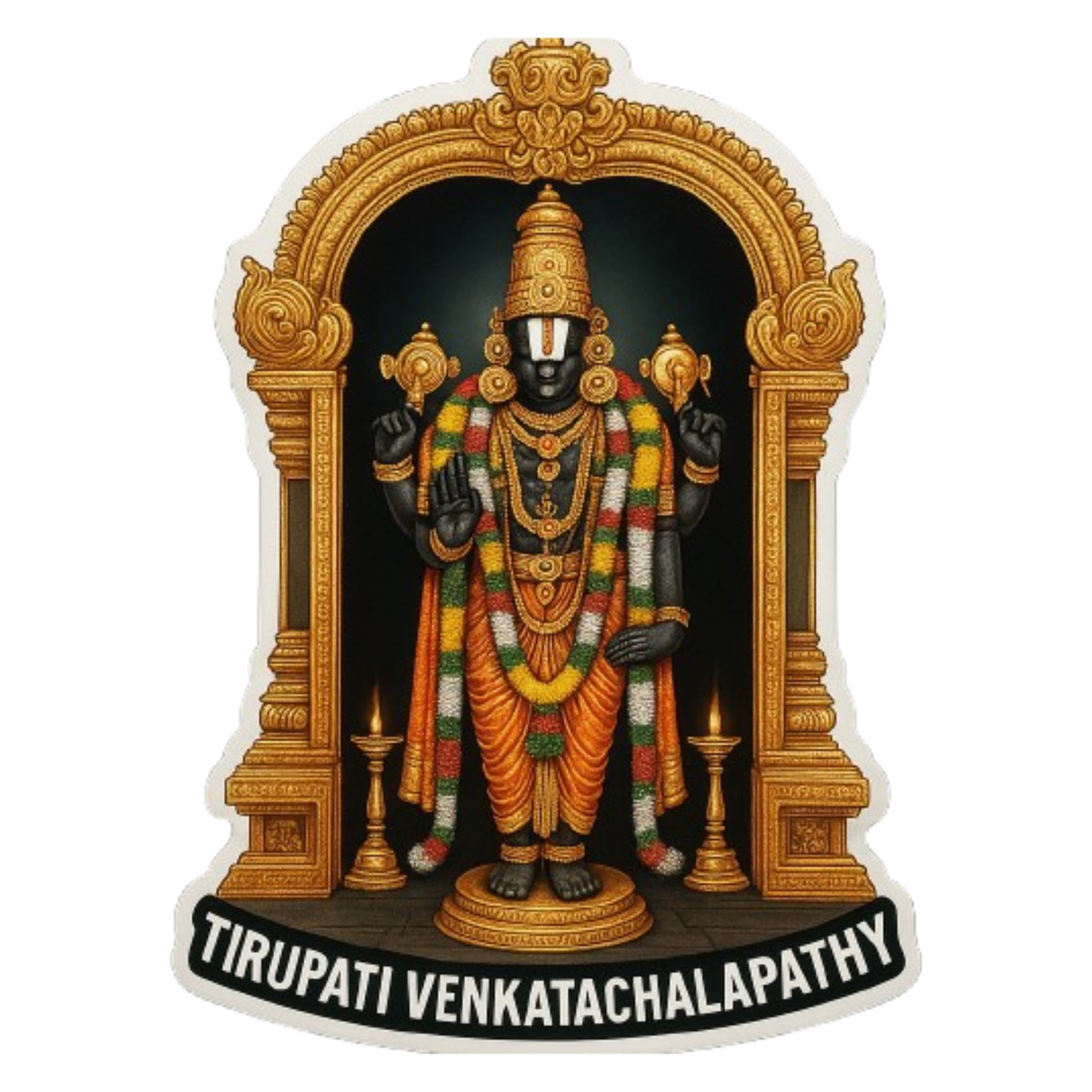 DIVINE TEMPLE ARTWORK – Features Lord Venkatachalapathy in vibrant detail with a golden arch, bringing sacred elegance to your car