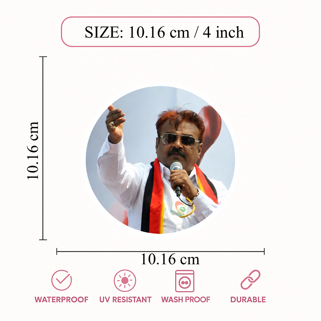 Smeeps Vijayakanth Portrait Round Sticker – 10.16 cm (4 Inch) Car & Bike Vinyl Decal | Waterproof UV Resistant Political Sticker
