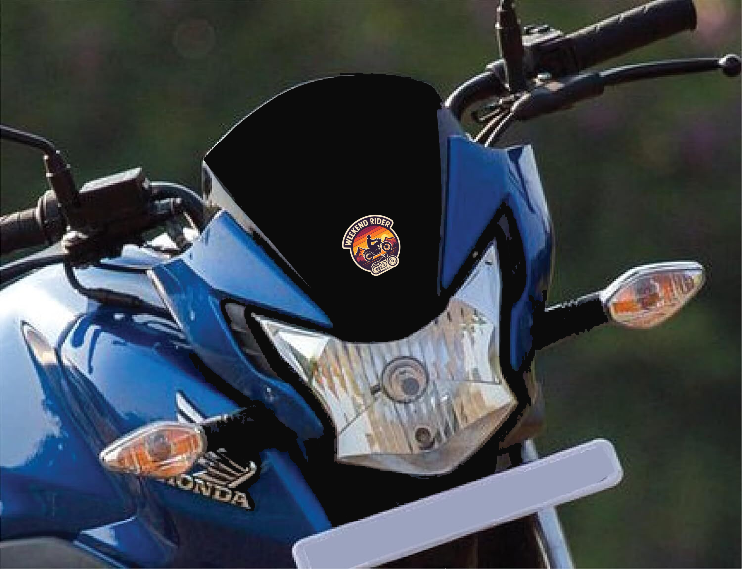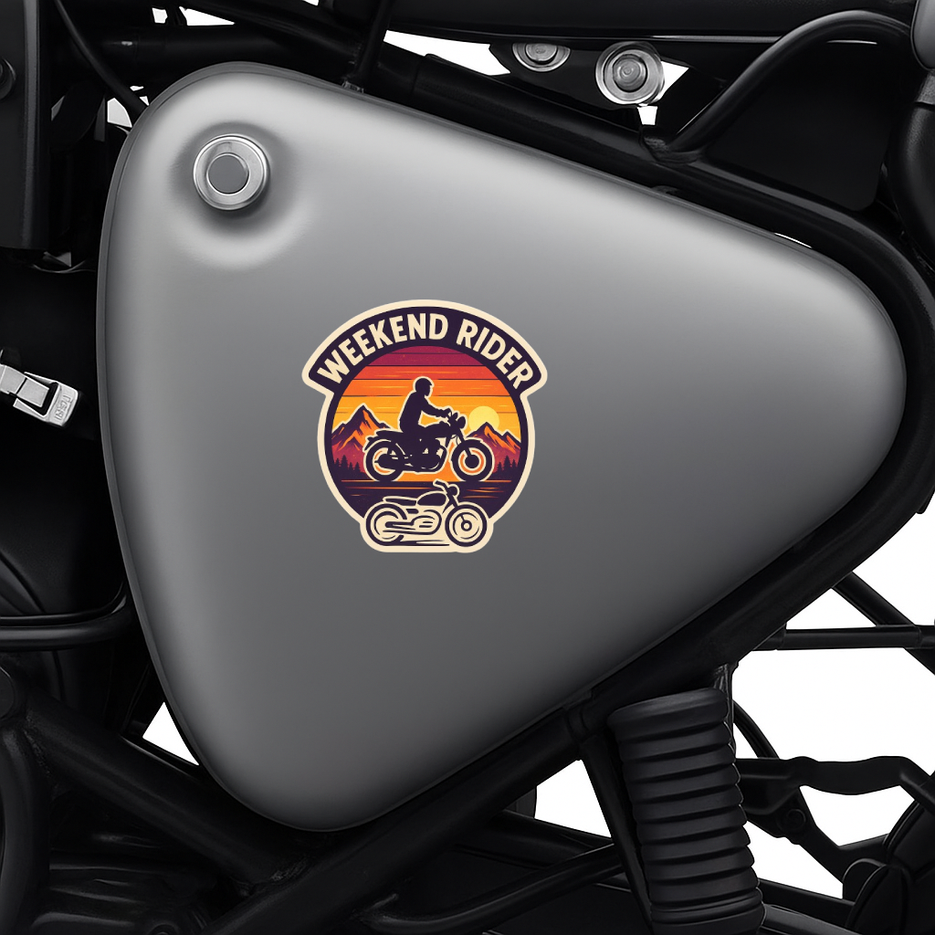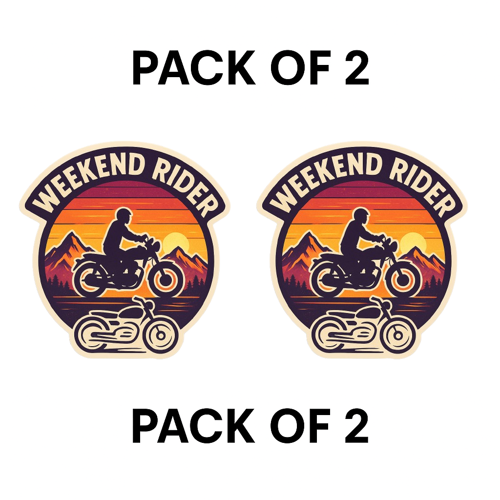 ADVENTURE RIDER THEME – Bold silhouette of a rider jumping across mountains with the phrase “WEEKEND RIDER” for thrill-seeking bikers